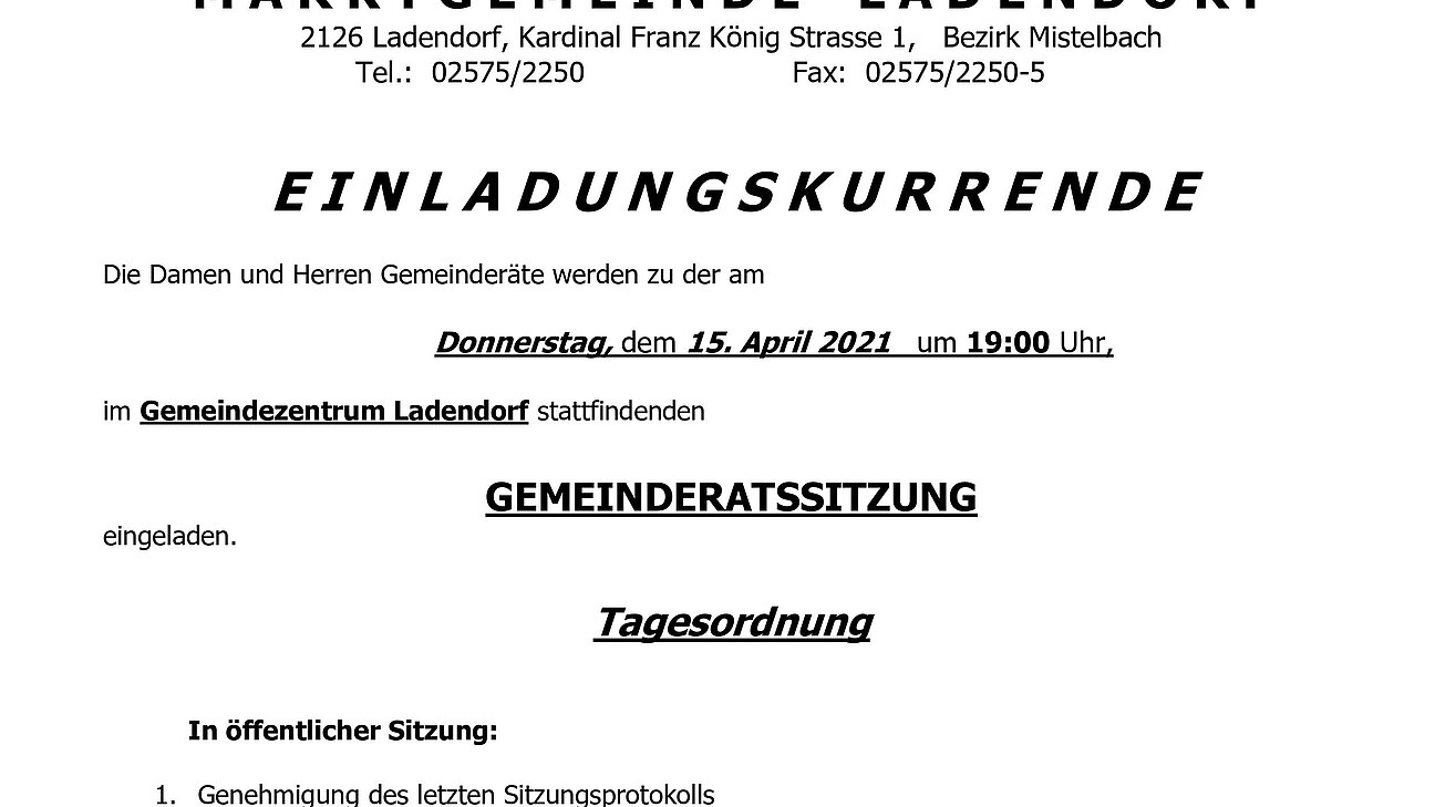 Ein Pachtvertrag in der KG Ladendorf liegt dem Gemeinderat zur Unterzeichnung auf.